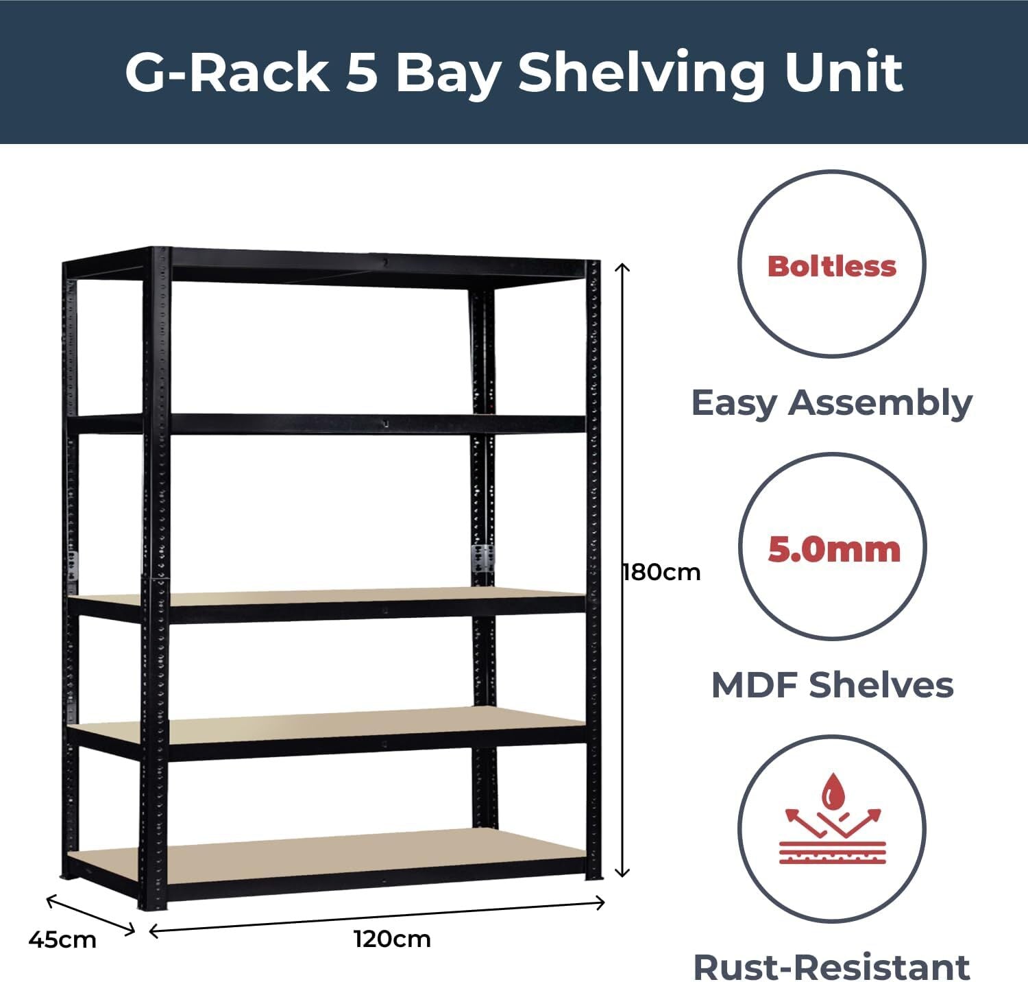 G-Rack Garage Shelving Racking Unit 5 Tier 180cm x 120cm x 45cm (875kg Per Rack)