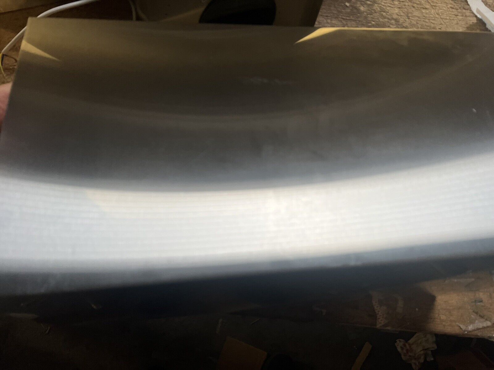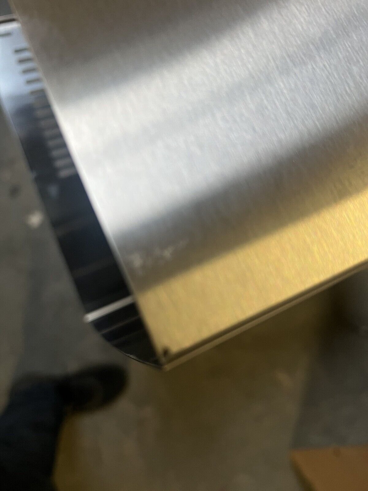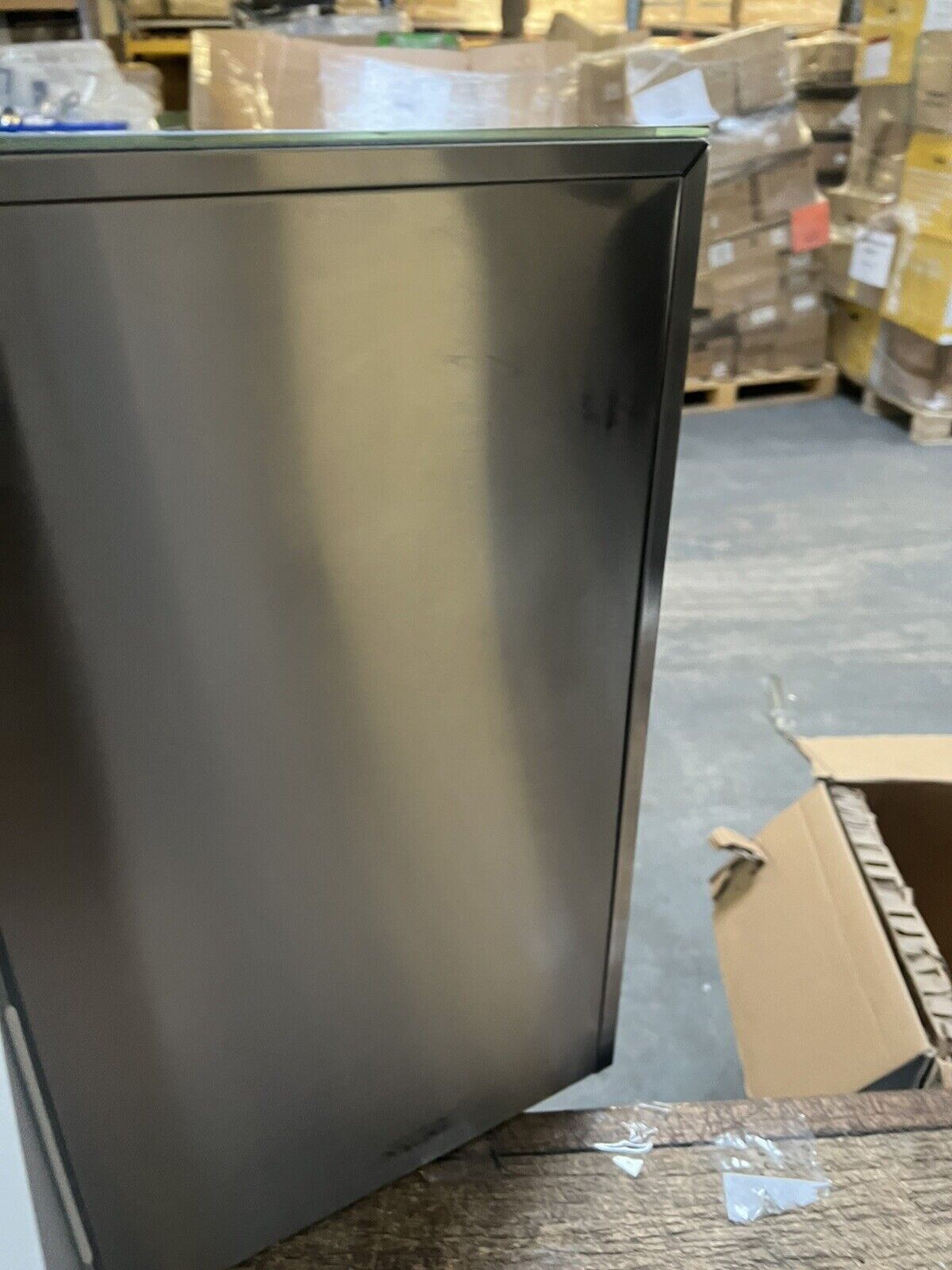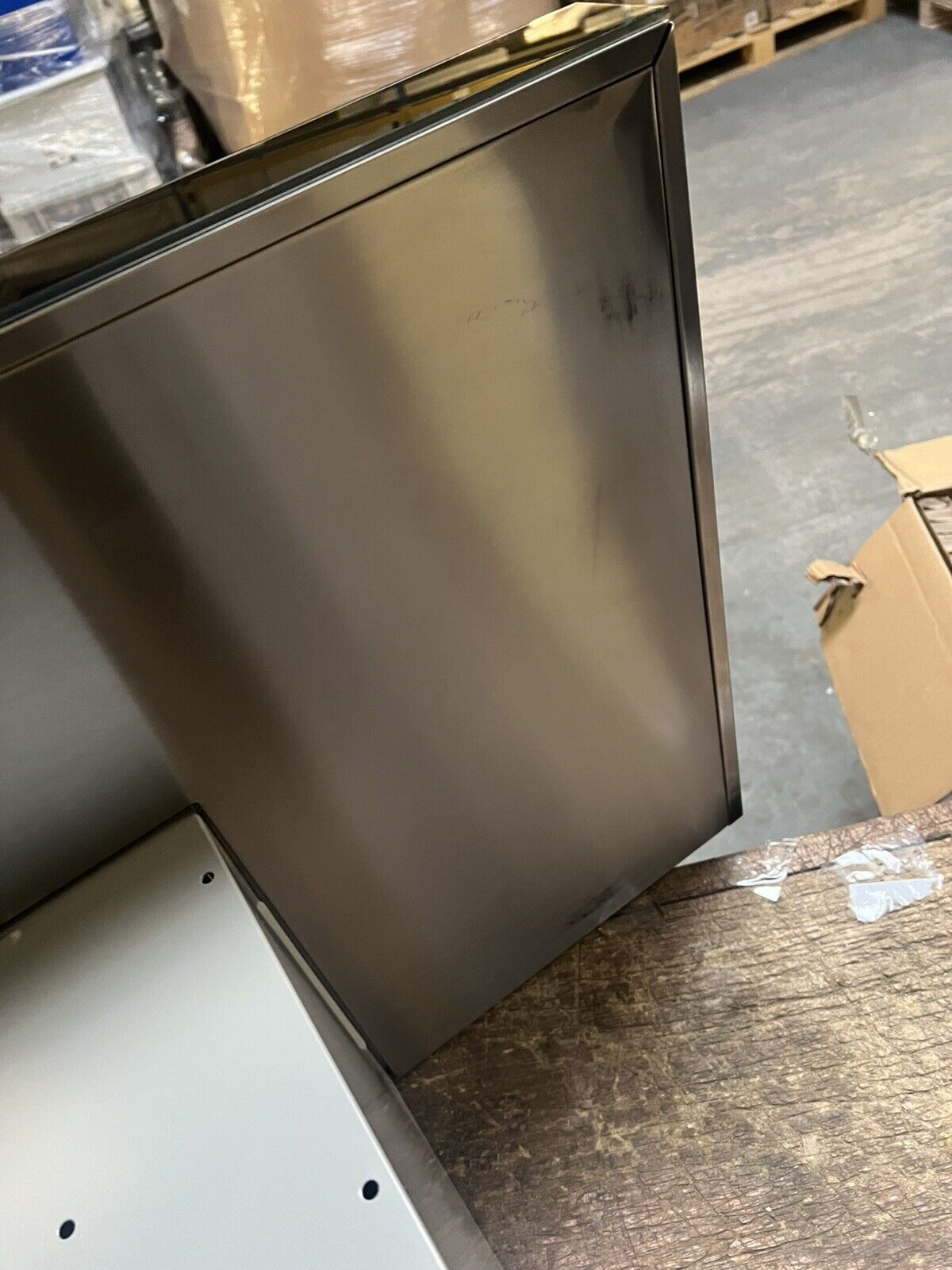 The item is new and shows no signs of use, but there are some minor scratches and marks. Please review the attached images for reference. The box has been damaged due to warehouse storage. The package includes only the parts shown in the images, with no accessories included and the screws missing. So kindly ask is you need any information