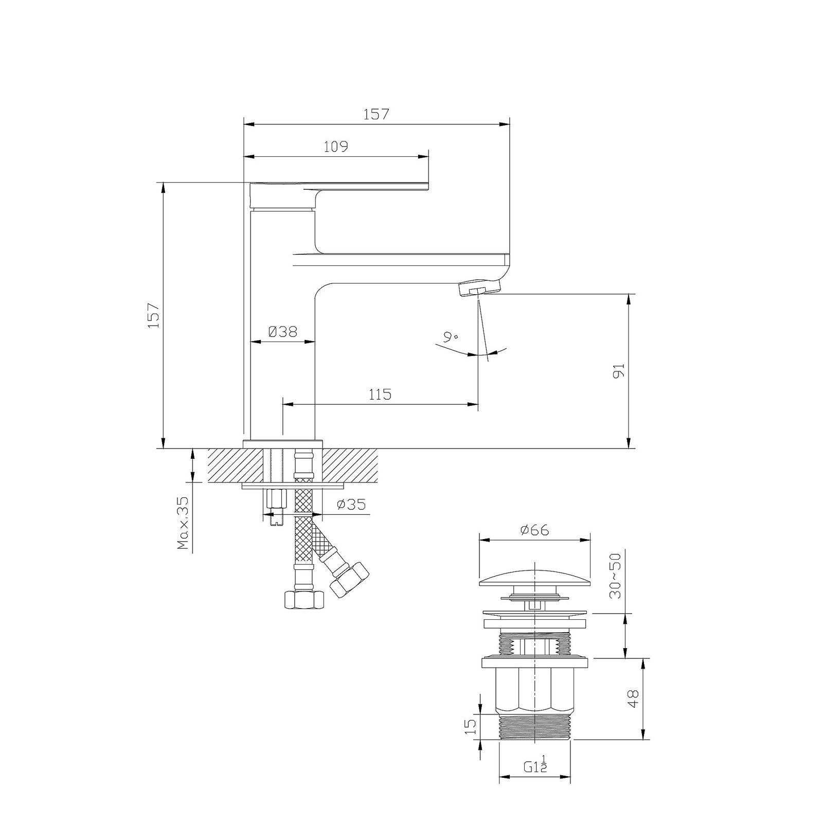 - A clicker-waste with overflow is provided to match the colour of the tap