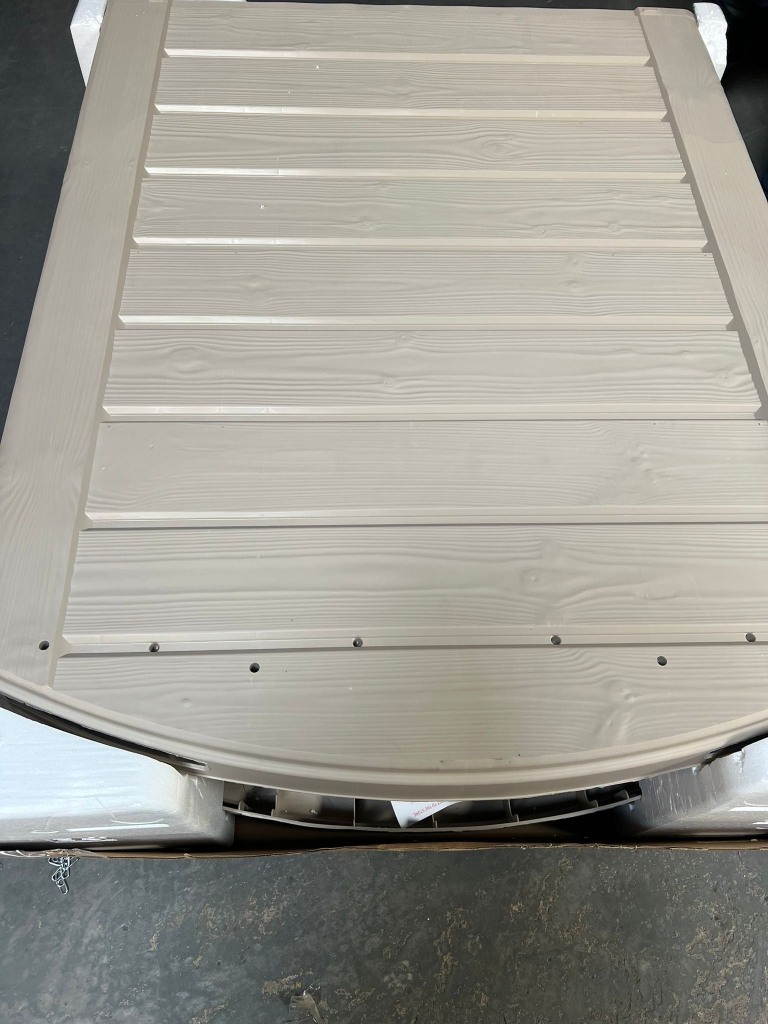 Elegant wood affect panels with a piston-assisted lid and wide opening doors and a 2000 L capacity