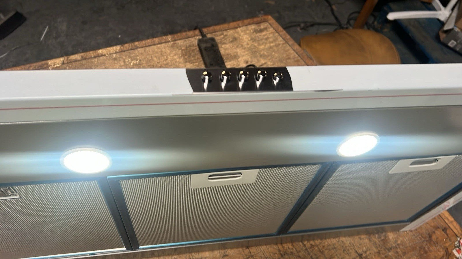 This 90cm chimney hood is a stylish and handy pairing to your cooker or built-in hob. It helps remove odours and illuminates your cooking area to provide a modern, stylish yet functional addition to your kitchen.