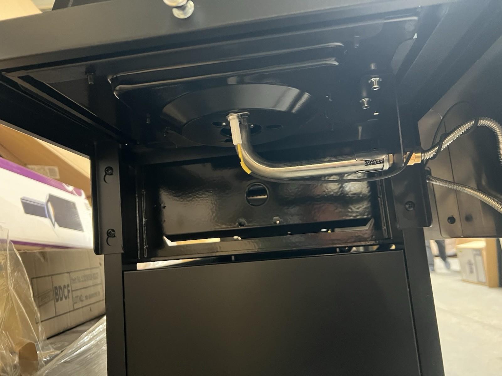 - Stainless steel top panel with black sandy painted endcaps