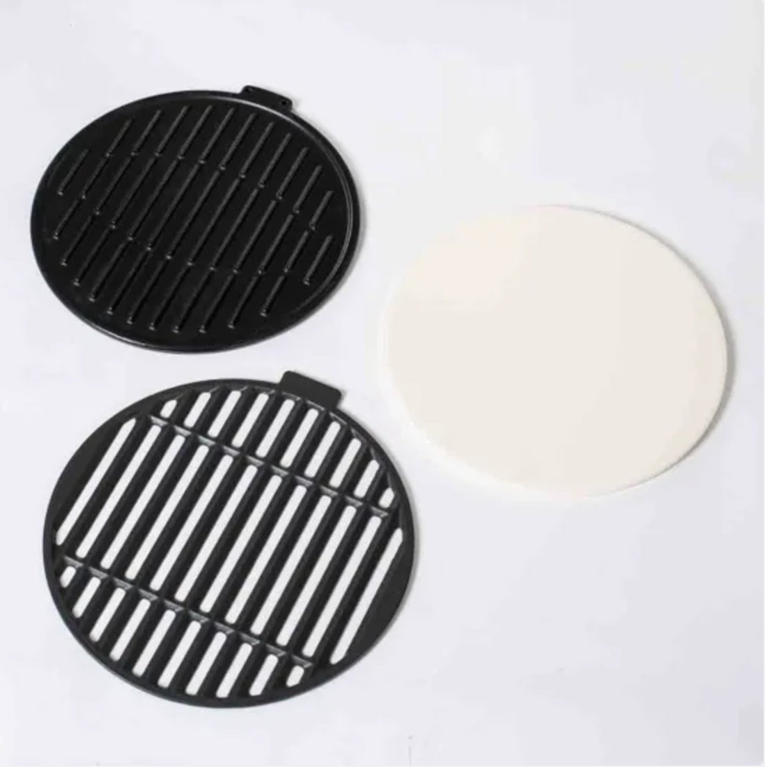 - Multi-cooking grills with round insert grill, plus 1pc normal cooking grill, matt black enameled cast iron